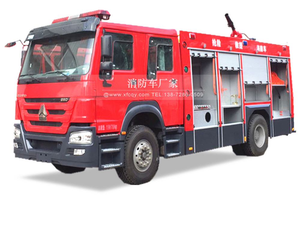 水罐消防車由底盤,乘員室,泵房,容罐,器材箱,水泵及管路,消防水炮,取力傳動裝置,附加電器,消防器材及固定裝置等組成,起重泵房,器材箱可采用整體式結(jié)構(gòu),也可采用分體式結(jié)構(gòu)。