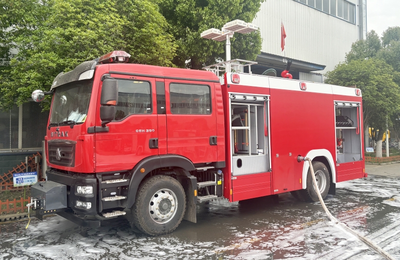 制動(dòng)與安全配置:消防車(chē)屬于特種車(chē)輛,制動(dòng)性能至關(guān)重要,需配備ABS防抱死系統(tǒng)、盤(pán)式制動(dòng)器;同時(shí),車(chē)身應(yīng)具備防撞鋼梁、防火涂裝,駕駛艙配備安全氣囊、倒車(chē)影像等主動(dòng)安全配置。