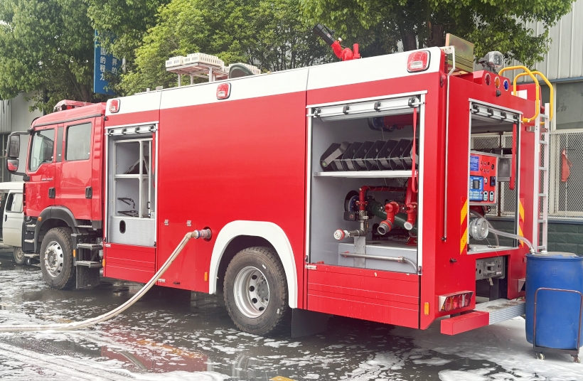 滅火劑容量:根據(jù)火災(zāi)規(guī)模與作業(yè)半徑選擇,社區(qū)消防站的水罐容量建議3-5噸,工業(yè)園區(qū)則需8-12噸;泡沫消防車(chē)的泡沫液罐容量應(yīng)不低于水罐容量的10%,滿(mǎn)足油類(lèi)火災(zāi)的持續(xù)撲救需求。
