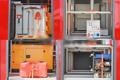 駕駛室頂部前端為長(zhǎng)排警燈,車身后配有24V/60W火場(chǎng)照明燈一只,車輛兩側(cè)上方各配有紅藍(lán)相配的爆閃燈,下方安裝安全標(biāo)志燈,乘員室、器材箱、 泵房?jī)?nèi)均裝有照明燈,加裝有100W警報(bào)器,回轉(zhuǎn)警燈開關(guān)、通訊設(shè)備預(yù)備接口。